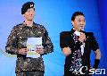 | [사진]이동건, '전역한 싸이, 부럽네' Sep 30th 2011, 11:10  | [OSEN=이대선 기자] '국군방송 위문열차 50주년 특집공연'이 30일 오후 서울 용산동 전쟁기념관 평화의 광장에서 열렸다. 국군방송 위문열차는 1961년 10월 첫 공연을 시작한 이래 지금까지 한 주도 거르지 않고 장병들이 있는 곳은 어디라도 달려가 무대를 연출한 최장수 라디오 공개방송이다. 한편, 이준기 상병은 "당대 최고 인기의 대선배님들께서 활약하셨던 '위문열차'의 뜻 깊은 '50주년 특집공연'에 사회를 맡게 되어 큰 영광으로 생각한다"며, '앞으로도 장병들의 사기 진작에 작은 보탬이라도 될 수 있도록 최선을... | | | |